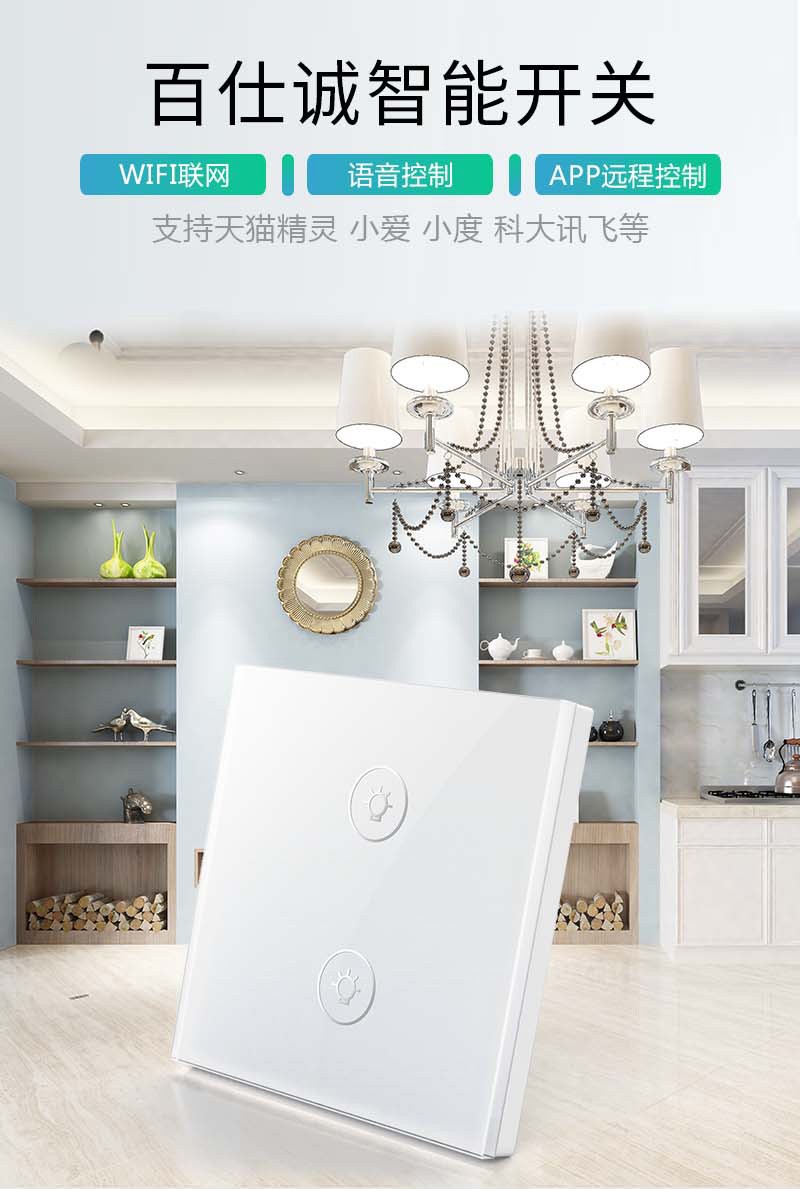 智能觸控平面鋼化玻璃式二位開關(guān)面板_百仕誠