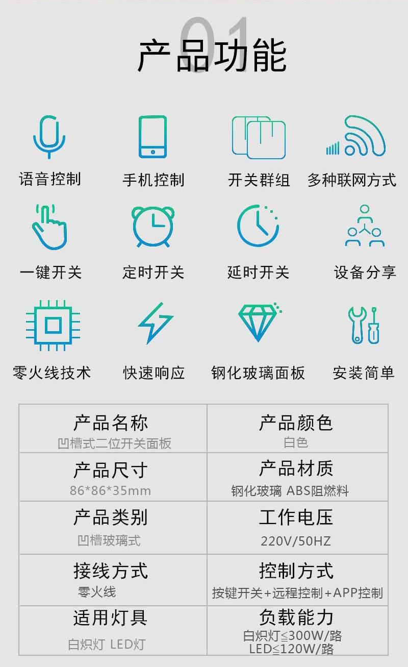 智能觸控凹槽式二位開關(guān)面板_百仕誠
