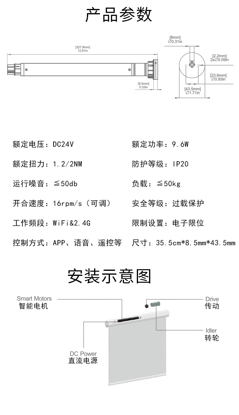 M2805EGWT插電型管狀窗簾電機(jī)